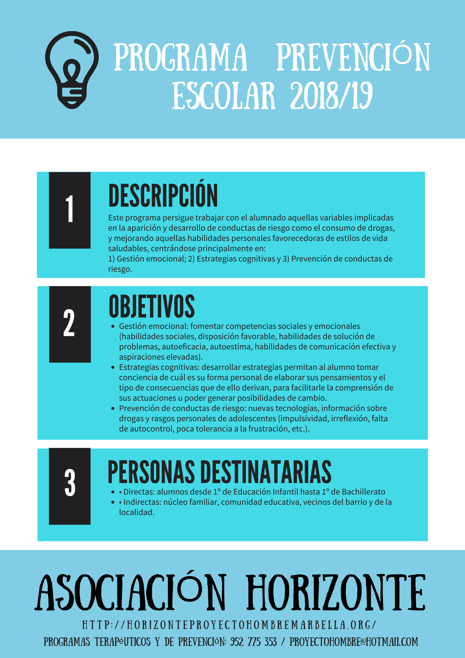 De manera general, las actuaciones preventivas que se desarrollan desde Horizonte Proyecto Hombre Marbella contemplan los siguientes objetivos: